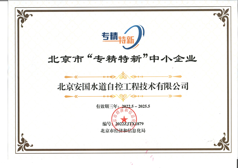 • 喜訊/安國水道獲得“北京市專精特新中小企業”稱號